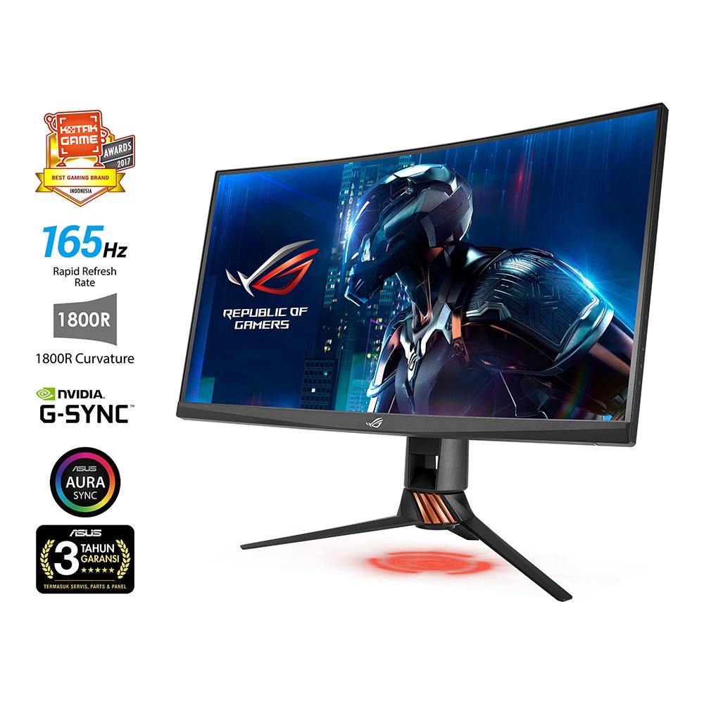 Box contents asus rog swift pg27vq quad hd 27 curved lcd gaming monitor power adapter power cable displayport cable usb 3 0 cable hdmi cable quick start guide acrylic led light covers support cd warranty card.